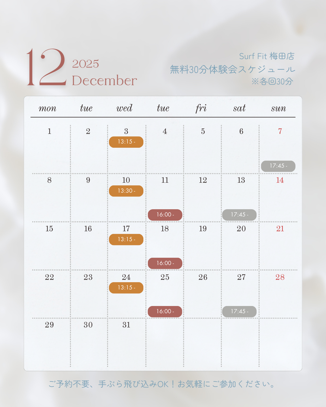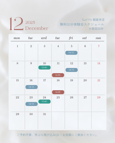 【12月】30分無料体験会スケジュール
